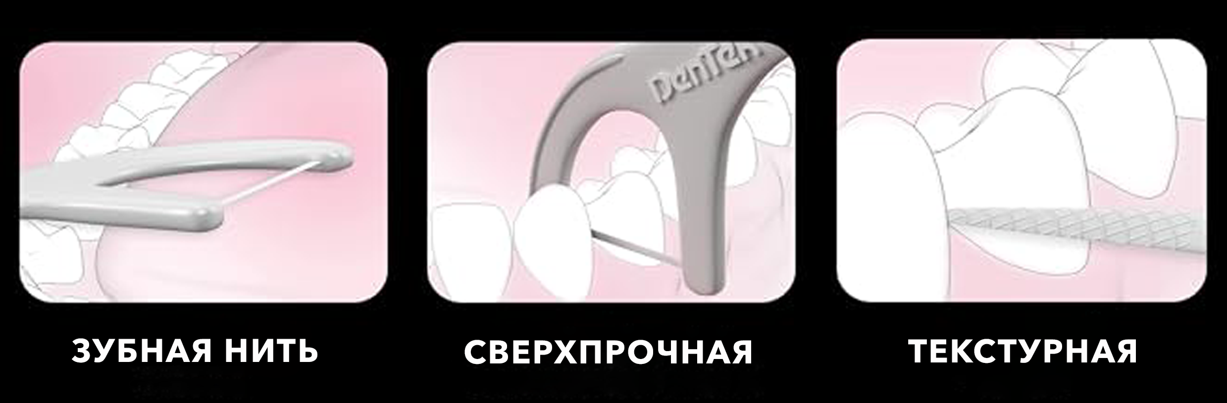 DenTek® Тройное очищение Флосс-зубочистки – это тройной очищающий эффект в одной флосс-зубочистке.