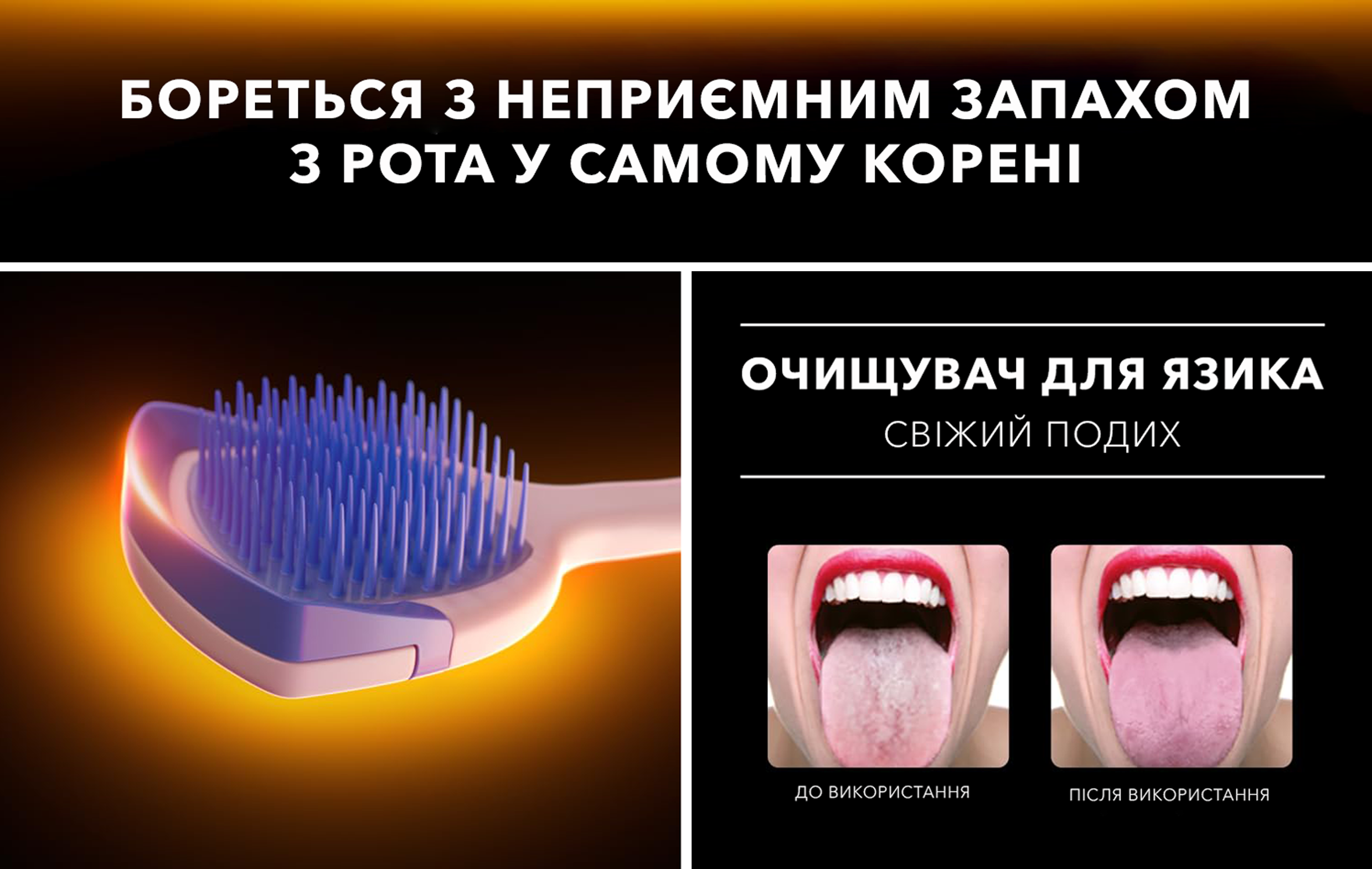 Очищувач язика Orabrush має ультрам'які, мікро-загострені щетинки, які проникають глибоко в тріщини язика для видалення бактерій, які є причиною неприємного запаху з рота. Ці щетинки розроблені на основі дизайну хірургічної скребкової щітки. Скребок збирає та видаляє бактерії, а також наліт, що залишився після чищення зубів, таким чином усуваючи причину неприємного запаху з рота. Замінюйте очищувач язика кожні 3-4 місяці.