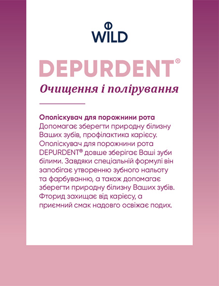 Для ідеального результату використовуйте ополіскувач для ротової порожнини DEPURDENT® разом з пастою для чищення та полірування зубів DEPURDENT®.